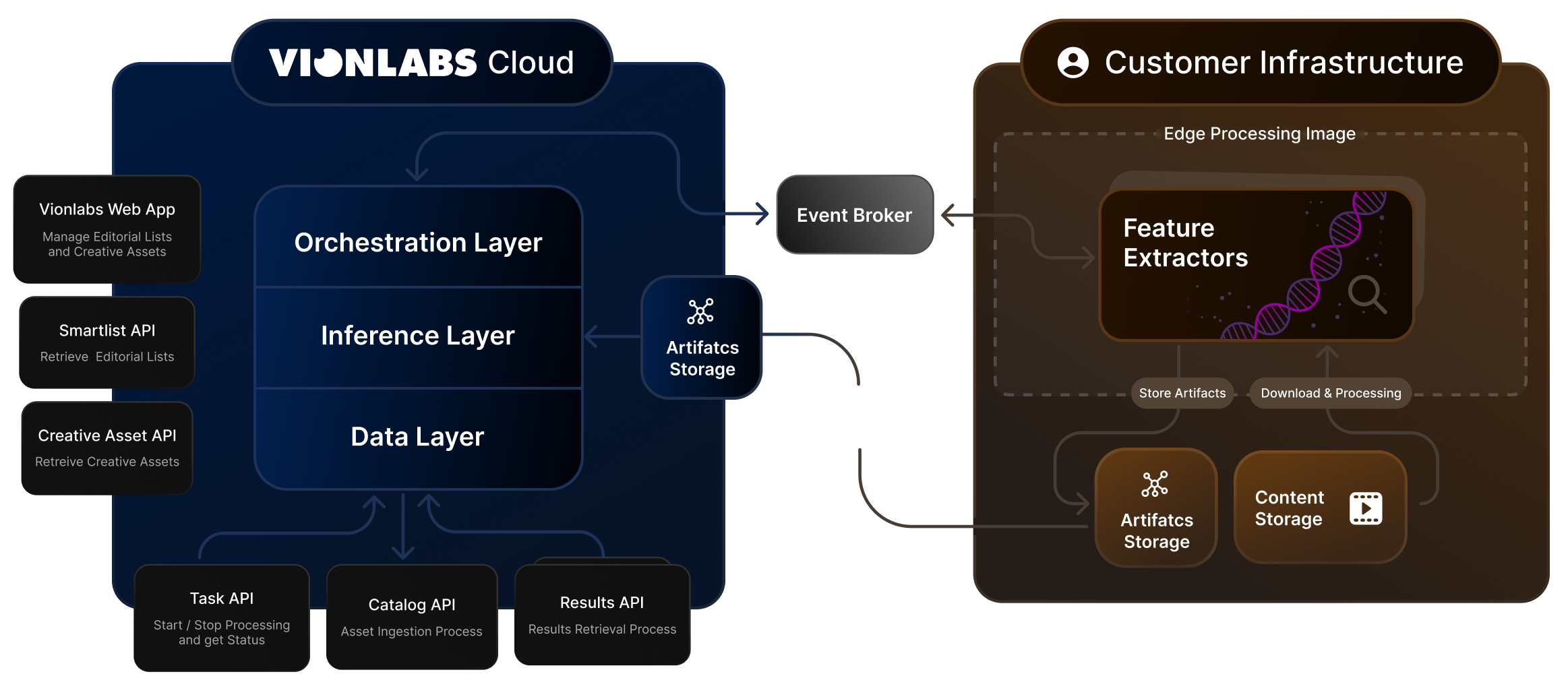 High-resolution video content remains under the full control of the customer. Vionlabs’ hybrid edge-processing architecture ensures that original video files are processed within customer-controlled environments and are not transferred to Vionlabs infrastructure.